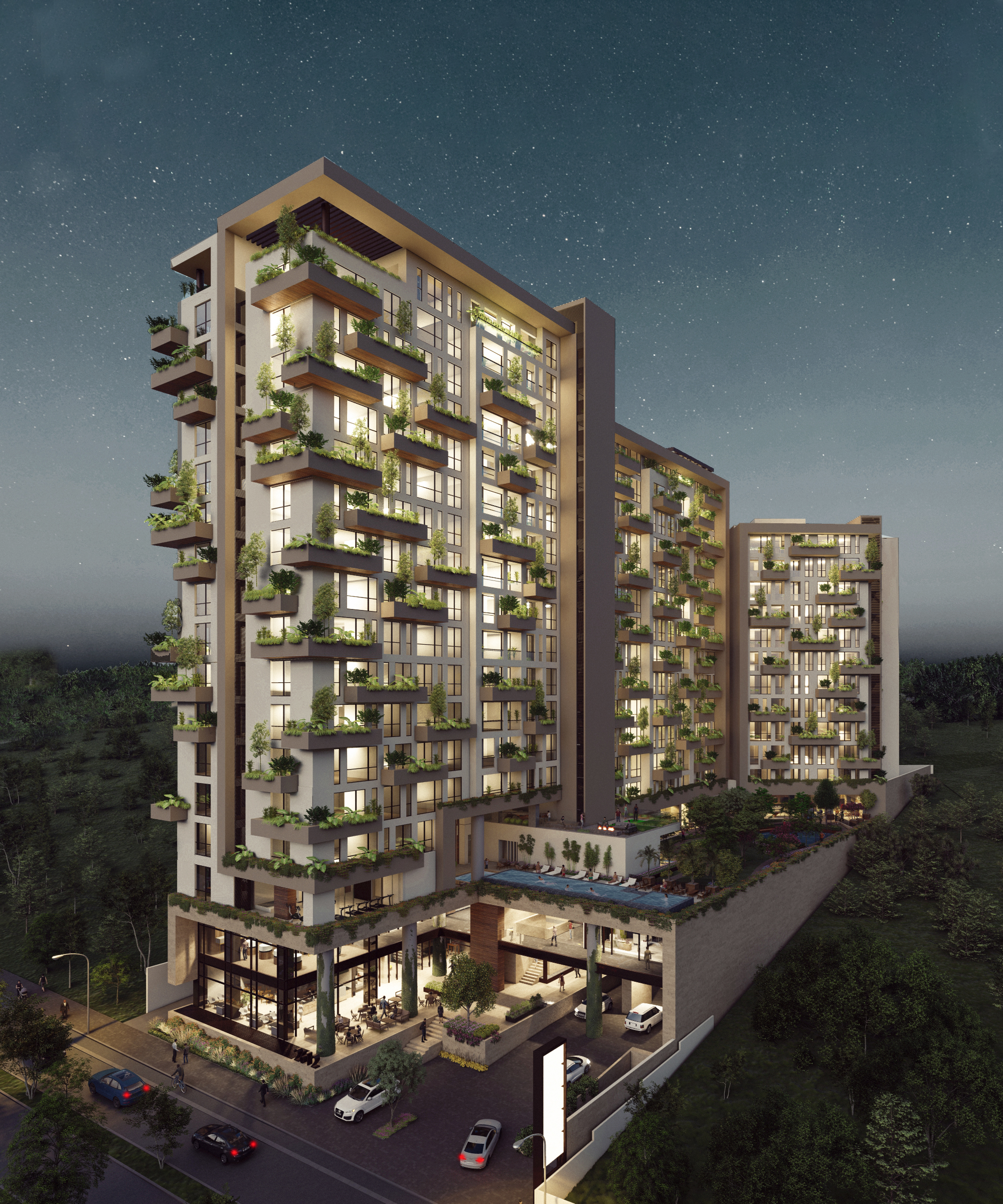 Ubicado en la ciudad de León Guanajuato, las Camelinas es un conjunto multifuncional conformada con una serie de comercios en su acceso y con 3 torres de departamentos de lujo con diversas áreas de amenities y recreación con vistas a la ciudad.